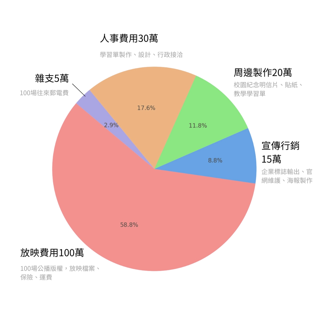 為提升電影議題在教育中的應用,我們將攜手環境顧問,製作適用於教師的教學資源並設計學習單,讓電影中的環境保護觀點更深入地融入教學中。此計畫也邀請企業參與,提供多樣化合作方案,在校園活動中展示企業標誌及相關故事,支持環保教育的推廣。